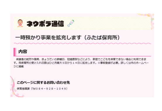【福山市HP】福山市からのお知らせ(随時更新)**