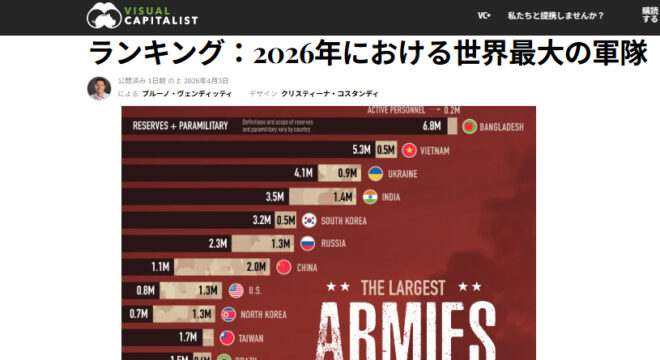 【visualcapi】ランキング:2026年における世界最大の軍隊:2026.4.5**