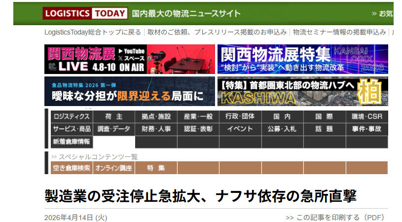 【物流ニュース-LOGITICS TODAY 】製造業の受注停止急拡大、ナフサ依存の急所直撃