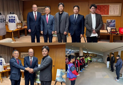 福山中央リトルシニアの5期生が枝廣直幹福山市長、今岡議長、小林教育長を表…