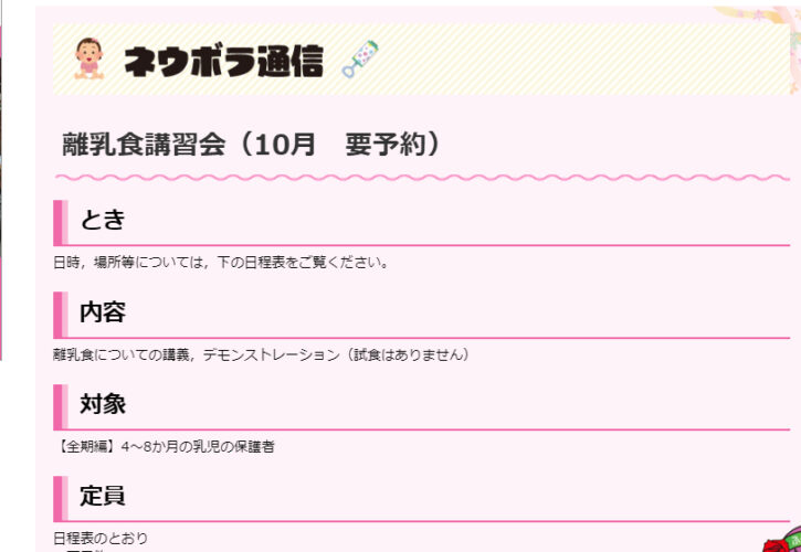 | 内容 | 日 | 時 間 | ところ | 定員 |