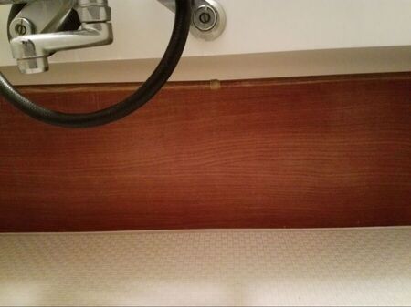 ①先ずは、洗面台下の端に突っ張って