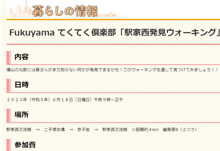 福山の北部には皆さんがまだ知らない何かが発見できるかも!このウォーキングを通して見つけてみましょう!!