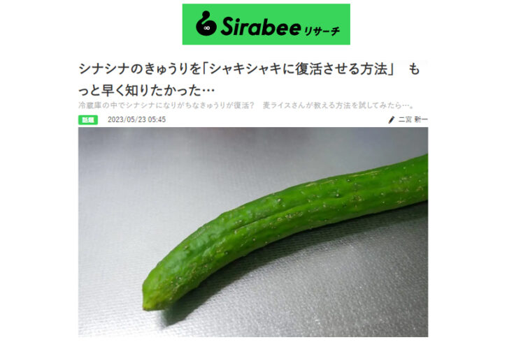 冷蔵庫の中でシナシナになりがちなきゅうりが復活? 麦ライスさんが教える方法を試してみたら…。