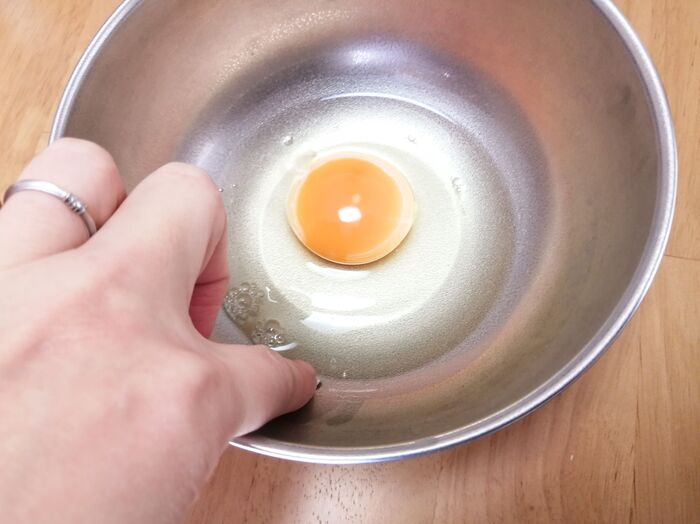 指先なら優しく殻を触って取り出せるのがメリット。殻のカケラが入ってしまった時に、オススメの取り出し方です。
