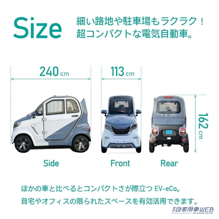 株式会社アントレックスは、ビークル事業として、超小型の電気自動車「EV-eCo」を発売した。現在予約受付中で、出荷開始は4月30日を予定している。