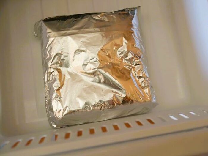 食パンを1枚ずつラップに包み、冷凍用保存袋に入れた後にアルミホイルで包んで冷凍庫へ。買ってきた袋のまま冷凍庫に入れちゃダメですよ!