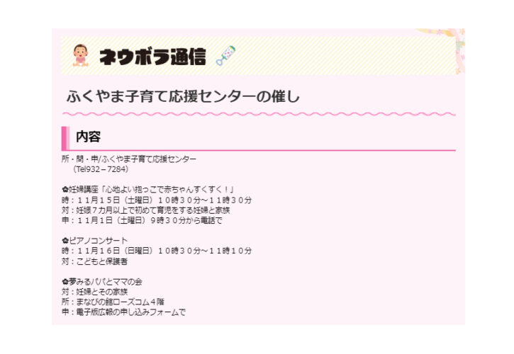 ふくやま子育て応援センターの催し