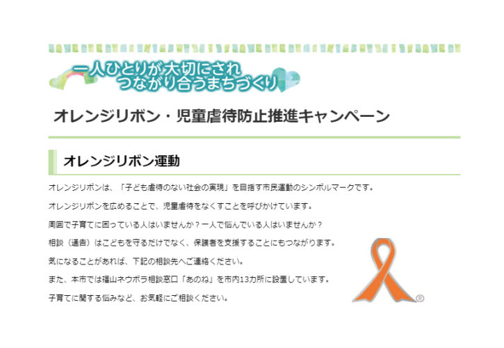 オレンジリボンを広めることで、児童虐待をなくすことを呼びかけています。
