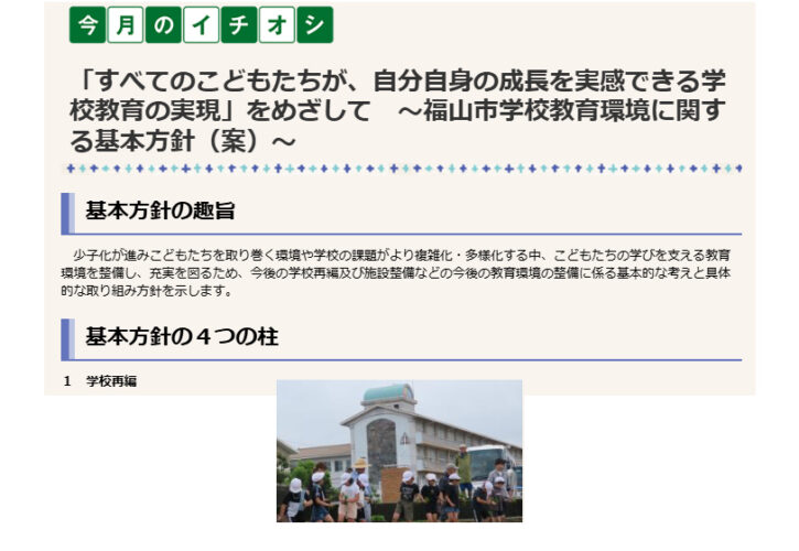 「すべてのこどもたちが、自分自身の成長を実感できる学校教育の実現」をめざして ~福山市学校教育環境に関する基本方針(案)~