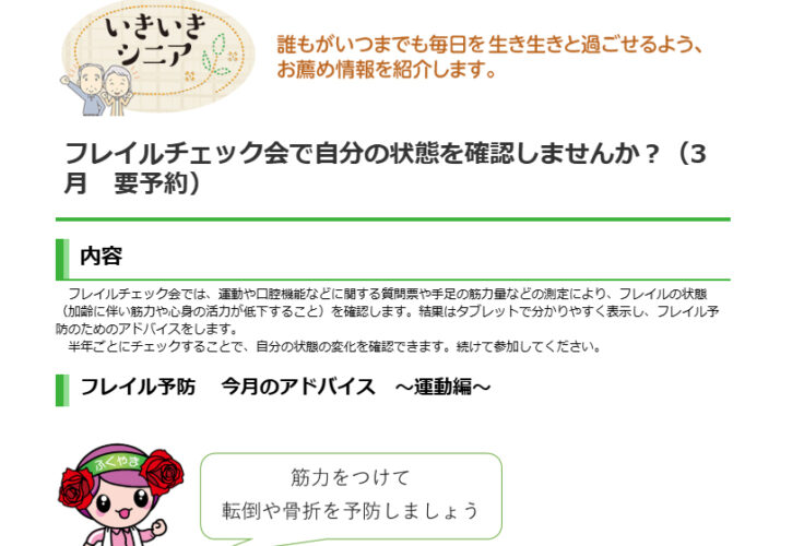 フレイルチェック会で自分の状態を確認しませんか?(3月 要予約)