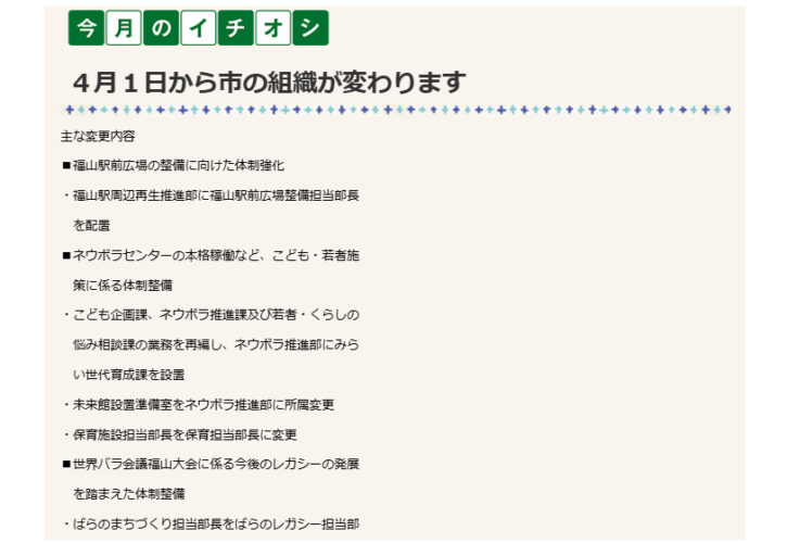 4月1日から市の組織が変わります