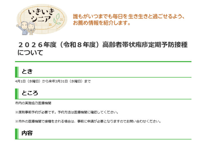 2026年度(令和8年度)高齢者帯状疱疹定期予防接種について