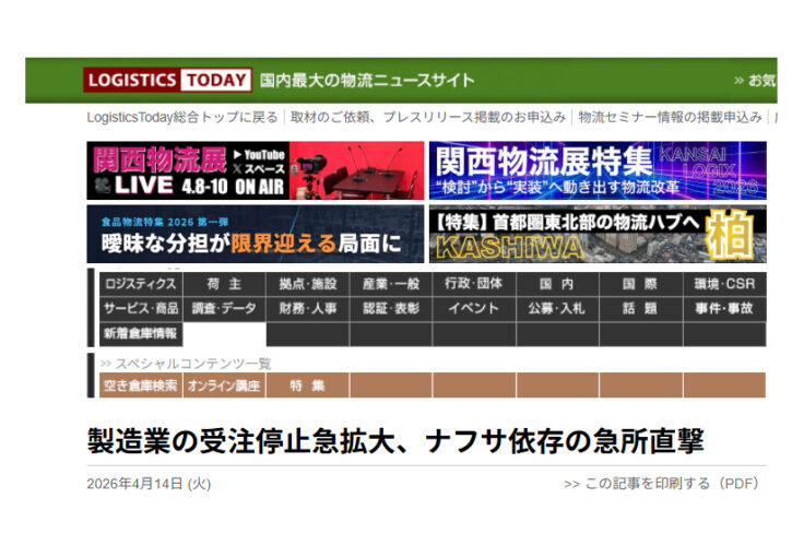 以上、【物流ニュース-LOGITICS TODAY 】ウエブサイト記事からの転載です。