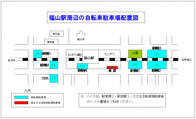 さんすて福山前の仮設自転車駐車場を廃止します