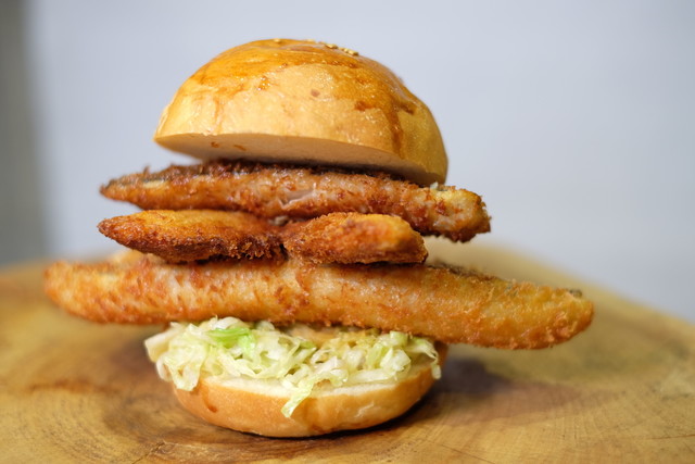 内海で採れる新鮮な魚を使ったフィッシュバ―ガ―は、本当にうまいです